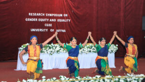 A panel discussion was apprehended on the topic of ‘Gender and politics’, Prof Surenthirakumaran Dean, Faculty of Medicine contributed as the moderator of the panel discussion. Dr. Pavithra Jeyawardena, Department of International Relations, Faculty of Arts, University of Colombo, Dr. Sivagnanam Jeyasankar, Department of Fine Arts, Faculty of Arts and Culture, Eastern University, Mrs. Rubawathy Ketheeswaran, District Secretary, District Secretariat, Kilinochchi, Mr. Jude Walton, Project Manager, United Nations Development Programme, Mr. Nadarajah Sukirtharaj, Coordinator, JSAC were the panellists of this discussion. A Drama “tUtP…Nuh!!!” staged by the Department of Fine Arts, and a welcome dance performed by the department of dance, Faculty of Sir Pon Ramanathan Performing and Visual Arts, University of Jaffna.