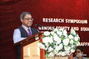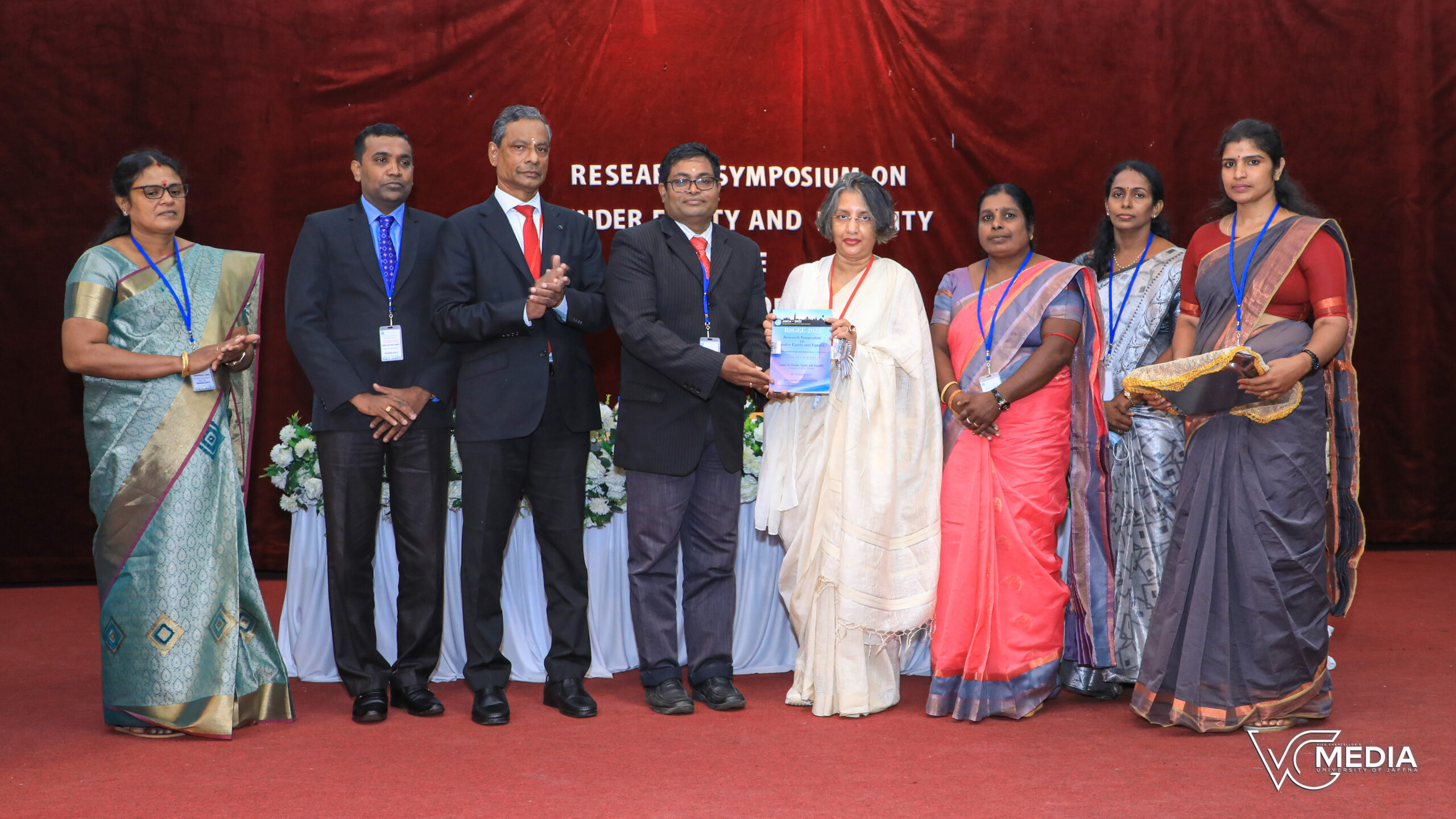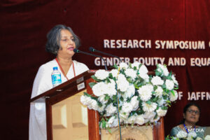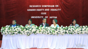 The first research symposium on gender equity and equality (RSGEE-2022) was organised by the Centre for Gender Equity and Equality (CGEE), university of Jaffna in collaboration with the United Nations Development Programmes (UNDP) on 28th of October 2022. This symposium was organised under the sphere of the Jaffna University international research conference (JUICe 2022) on the theme ‘sustainable development through gender equity and equality. The first lady Maithree Wickramasinghe , the Chair and Senior Professor of English at the Department of English University of Kelaniya and the founding Director of the Centre for Gender Studies at the University of Kelaniya, Sri Lanka, and the Visiting Professor at the Centre for Higher Education and Equity Research (CHEER), University of Sussex, United Kingdom, addressed a key note on the theme “Sustainable Development through Gender Equity and Equality in the New Normal – An Ontological Perspective”. Senior Professor G.Migunthan introduced the remarks about the key note speaker.