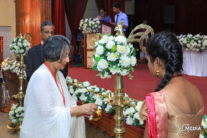 The first research symposium on gender equity and equality (RSGEE-2022) was organised by the Centre for Gender Equity and Equality (CGEE), university of Jaffna in collaboration with the United Nations Development Programmes (UNDP) on 28th of October 2022. This symposium was organised under the sphere of the Jaffna University international research conference (JUICe 2022) on the theme ‘sustainable development through gender equity and equality. The first lady Maithree Wickramasinghe , the Chair and Senior Professor of English at the Department of English University of Kelaniya and the founding Director of the Centre for Gender Studies at the University of Kelaniya, Sri Lanka, and the Visiting Professor at the Centre for Higher Education and Equity Research (CHEER), University of Sussex, United Kingdom, addressed a key note on the theme “Sustainable Development through Gender Equity and Equality in the New Normal – An Ontological Perspective”. Senior Professor G.Migunthan introduced the remarks about the key note speaker.