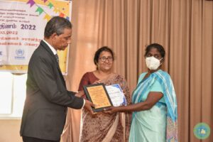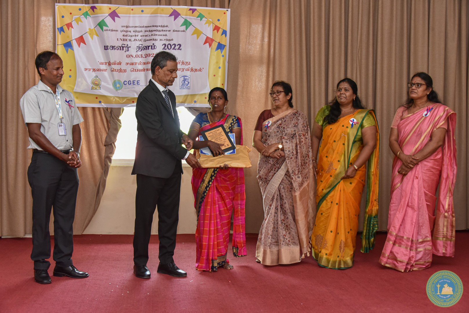 International women’s day was celebrated on the 8 th of March 2022 at the training Centre of District Secretariat Kilinochchi. Vice-chancellor, University of Jaffna Prof.S.Srisatkunarajah was the chief guest and Mrs R.Keetheeshwaran was the special guest of this event. Director, Members of the CGEE, University of Jaffna, Staff of the District Secretariat, Killinochchi, women development officers, Community Based organizations, JSAC representatives, UNHCR representatives, and the public participated in this event. The selected women who struggled, faced life challenges, succeeded, and contributed to the social and economic development of their village were appreciated and recognized via the ‘successful women award’ 2022.